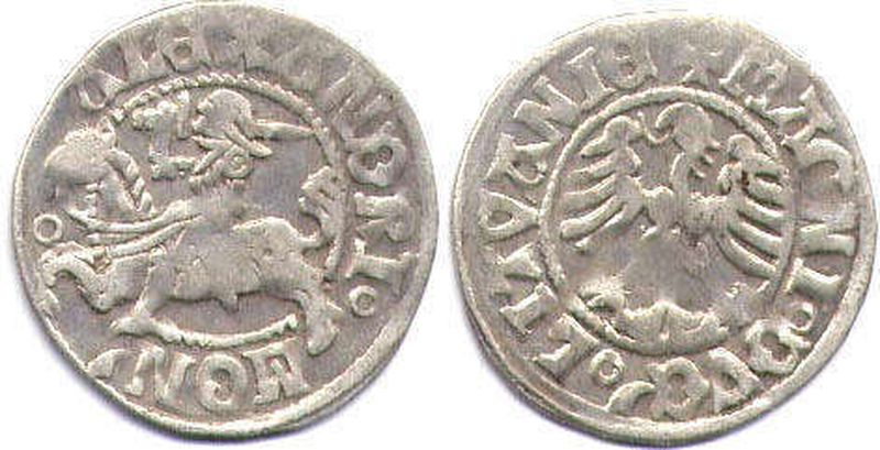У другой палове XIV стагоддзя ў старажытнай беларускай дзяржаве ВКЛ пачалі нарэшце чаканіць уласную манету — дробны літоўскі дынарый (пенязь). Яна рабілася драцяным спосабам, таму мела няроўныя краі. Выпускалася ў невялікай колькасці.