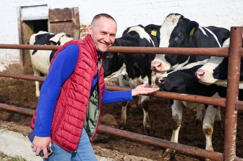 Кароўкі, убачыўшы (дакладней — учуўшы) гасцей, дружнай чарадой, адна за адной, выбягаюць з кароўніка ў вулічны загон, цягнуць шыі, уцягваюць паветра сваімі вялікімі пысамі... Усе — галштынскай пароды. І калі падысці да іх ушчыльную, могуць залізаць ад дружалюбных пачуццяў да чалавека. Сацыялізацыя — адно з самых дакладных сведчанняў, што жывёл добра даглядаюць, душэўна да іх ставяцца.