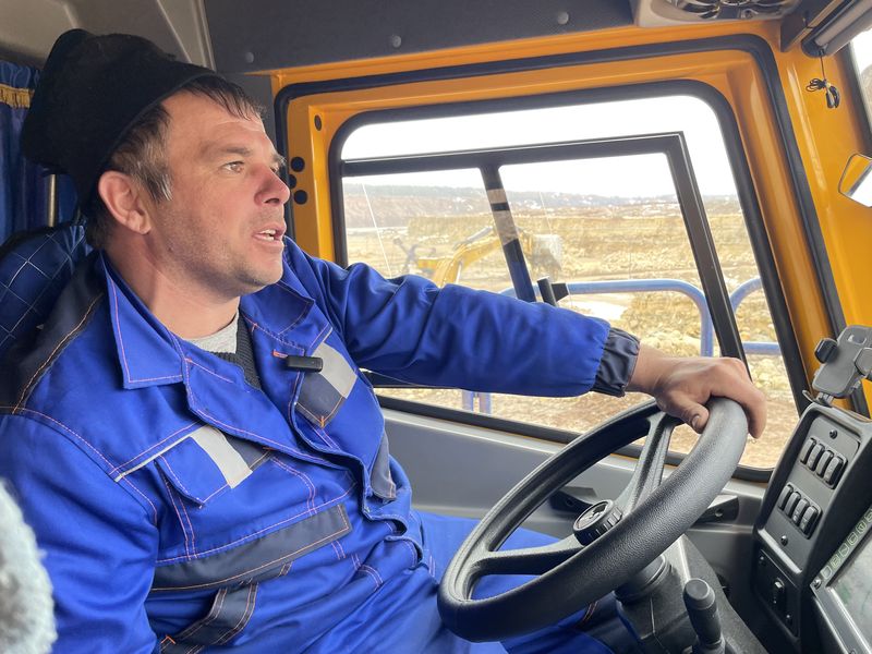 — За кожным БЕЛАЗам замацаваны чатыры вопытныя кіроўцы, — тлумачыць вадзіцель Юрый Небарака. — Працуем пазменна па адным, каб тэхніка выкарыстоўвалася на поўную магутнасць. На 30-тоннай машыне за 12-гадзінную змену трэба выконваць па 46 рэйсаў. Вядома ж, прадукцыйнасць працы на новых 55-тонных самазвалах, грузападымальнасць якіх амаль удвая большая, павялічыцца.