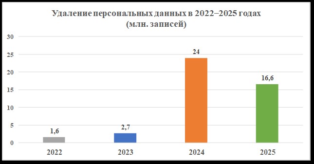 Так, около 20 из 50 нарушений систем защиты персональных данных, имевших место в 2025 году, произошли по вине уполномоченных лиц.