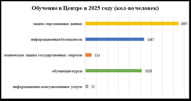 Одной из основных задач Центра является организация обучения по вопросам защиты персональных данных, а также обучение работников и (или) иных лиц, в обязанности которых входит обеспечение технической и (или) криптографической защиты информации, по образовательной программе повышения квалификации руководящих работников и специалистов.