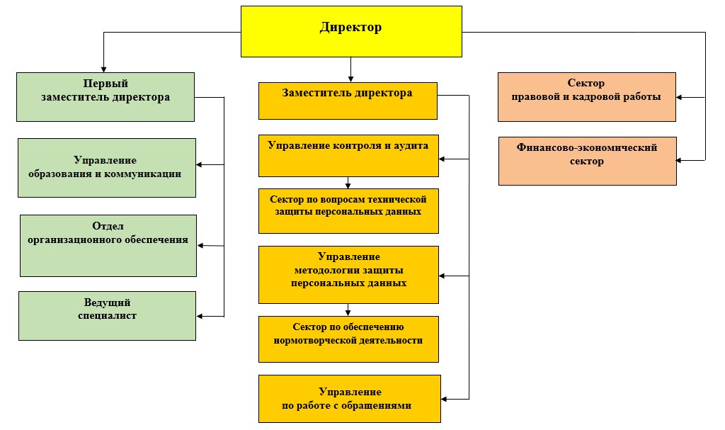 Структура Центра в 2025 году претерпела изменения (отдел по работе с обращениями преобразован в соответствующее управление, управление образовательных услуг и связей с общественностью переименовано в управление образования и коммуникации) и по состоянию на 31 декабря 2025 г. является следующей: