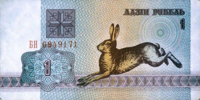 Пасля набыцця краінай незалежнасці Нацыянальны банк у 1992 годзе пачаў выпуск разліковых білетаў наміналам ад 50 капеек да 100 рублёў з выявамі жывёл, якія хутка сталі афіцыйна нацыянальнай валютай. На білеце ў 1 рубель красаваўся заяц-русак, таму грошы атрымалі народную назву «зайчыкі».