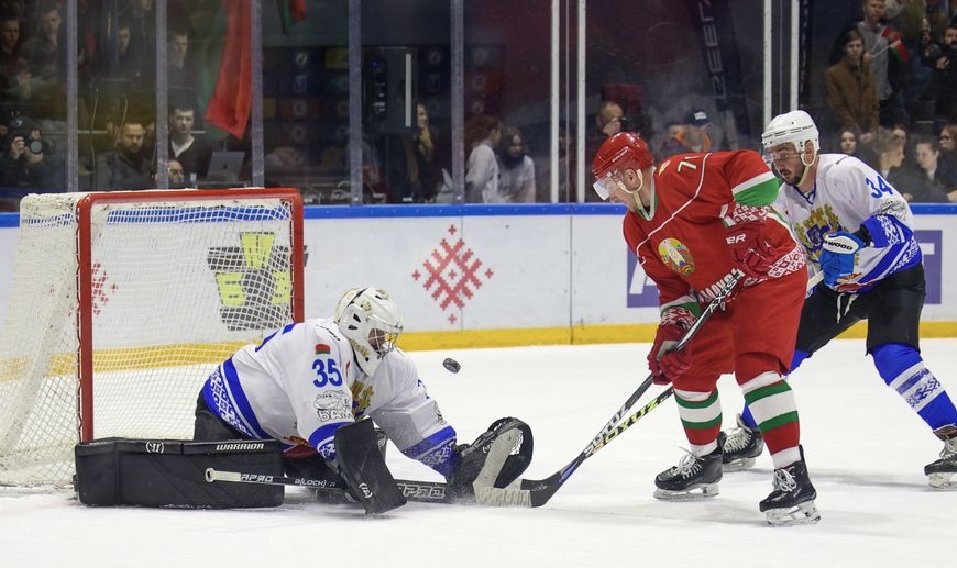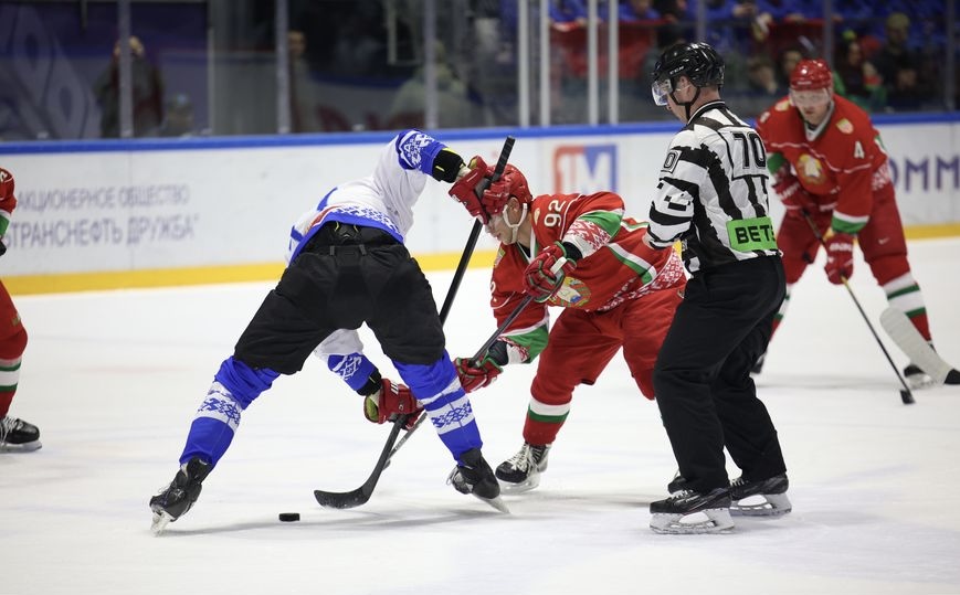У мінулы аўторак прэзідэнцкая каманда выйграла з лікам 6:3 і сёння імкнулася здабыць другую перамогу. І гэта ёй удалося. Ужо праз паўтары хвіліны пасля пачатку сённяшняй сустрэчы лік адкрыў найлепшы бамбардзір сезона Андрэй Касціцын, адным з асістэнтаў якога быў Аляксандр Лукашэнка. Гэты гол аказаўся адзіным у першым перыядзе, нягледзячы на намаганні гульцоў абедзвюх каманд.