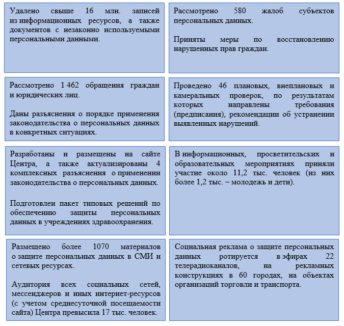 Значительное внимание уделено отражению мер, принимаемых Центром как уполномоченным органом по защите прав субъектов персональных данных.
