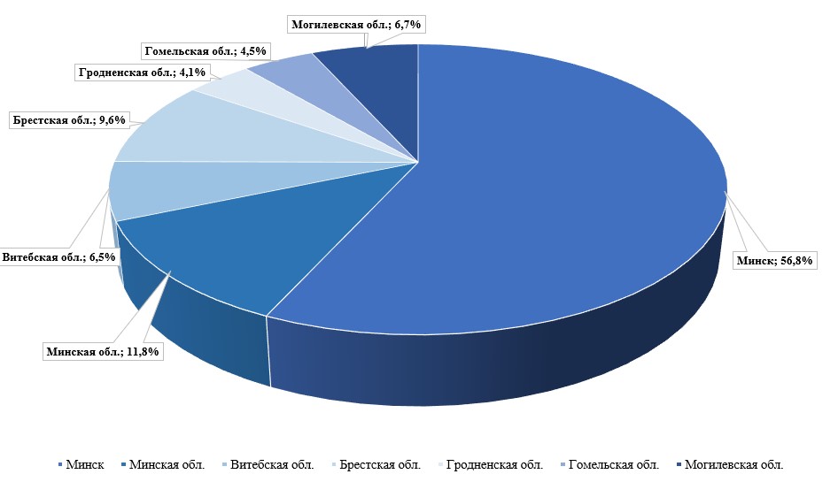 Подавляющее количество жалоб поступило из г. Минска (56,8%), наименьшее — из Гродненской и Гомельской областей (4,1% и 4,5%).
