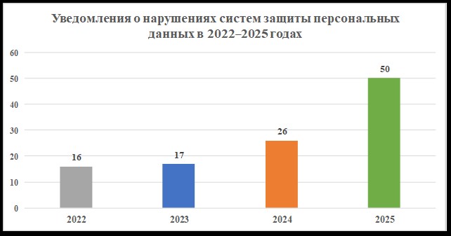Так, около 20 из 50 нарушений систем защиты персональных данных, имевших место в 2025 году, произошли по вине уполномоченных лиц.