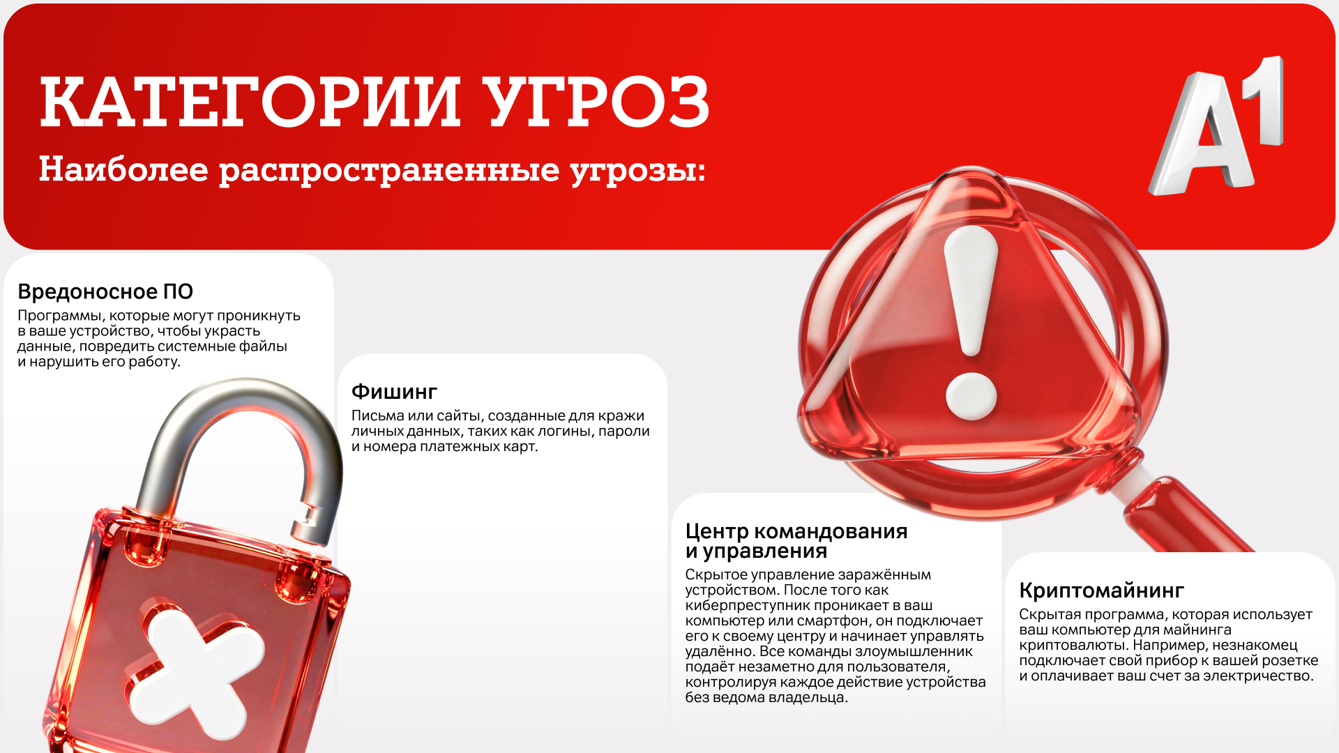 Также услуга от А1 умеет отслеживать и предотвращать и другие типы угроз: например, использование вашего устройства для криптомайнинга и др.